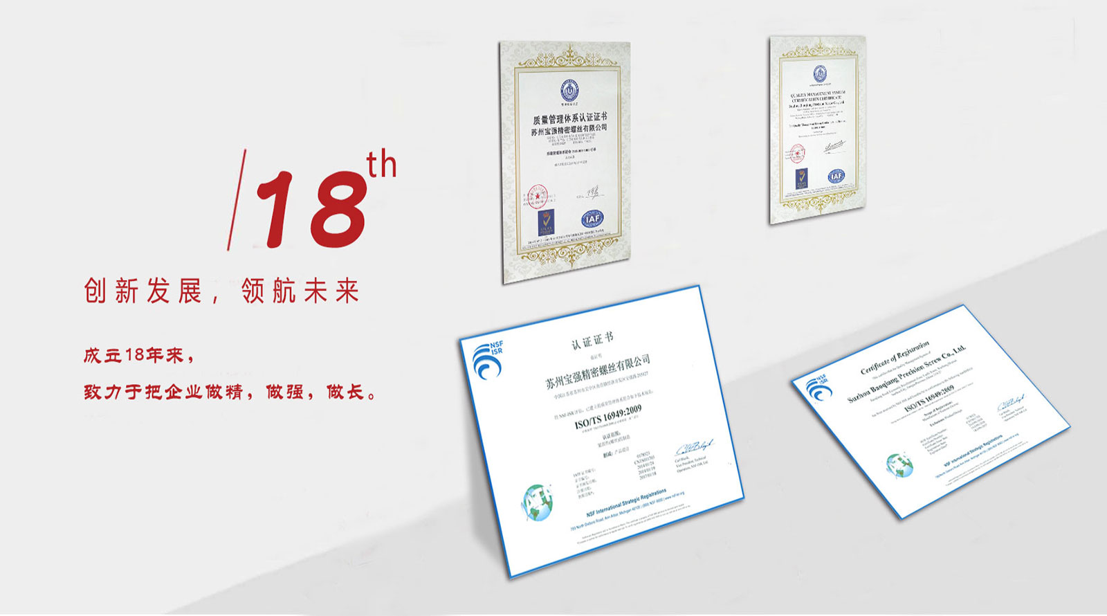 蘇州寶強(qiáng)五金與精密螺絲合并,通過TS/16949體系認(rèn)證。